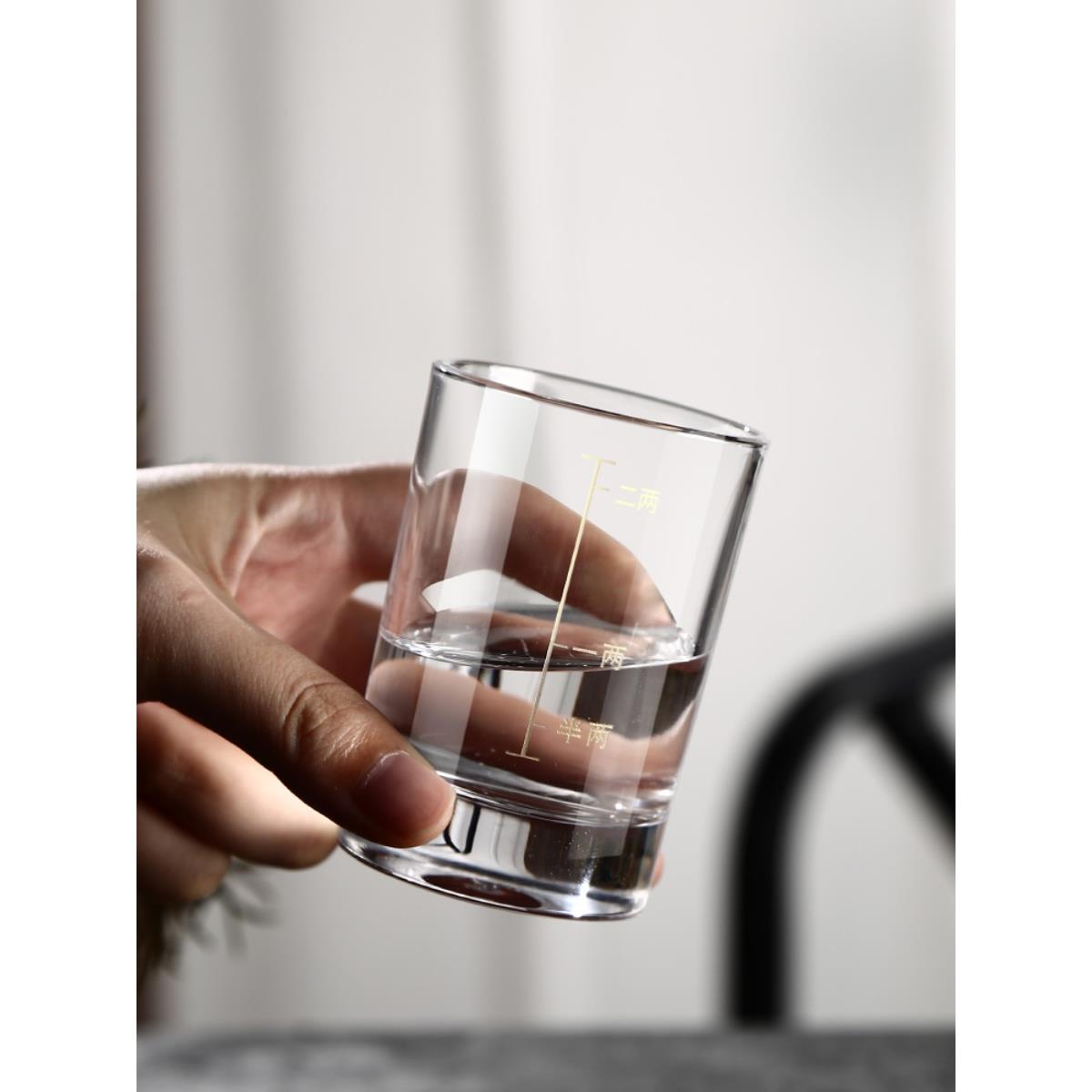 二两白酒杯带刻度家用钢化玻璃大号分酒器酒具套装2两3两烈酒杯