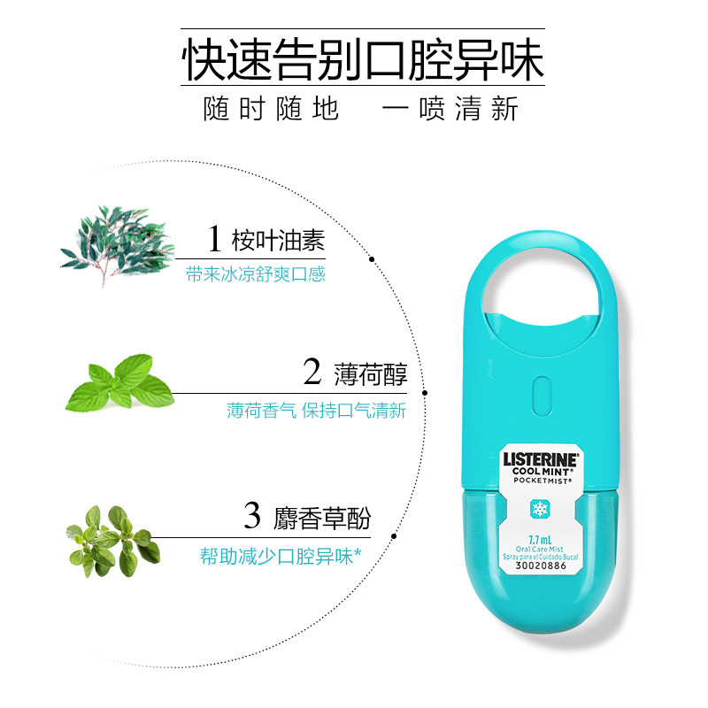 李施德林口腔喷雾减少口臭男女便携口气清新剂口味随机 瑕疵品