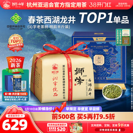 2026新茶预售狮峰牌西湖龙井茶明前特级沁字春绿茶叶礼盒装250g