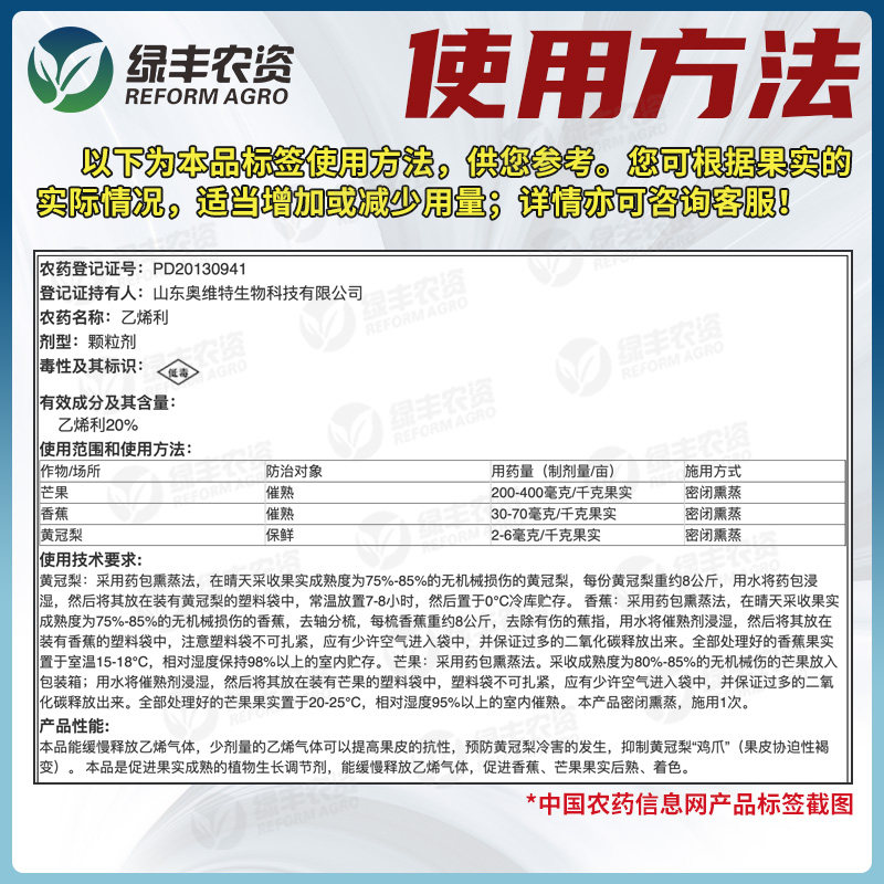 鲜峰乙烯利催熟剂水果专用熏蒸剂
