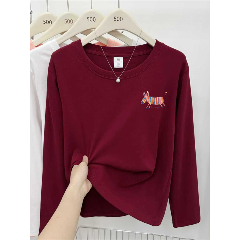 2025秋季新款胖mm时尚大码正肩长袖T恤女内搭圆领打底衫洋气上衣
