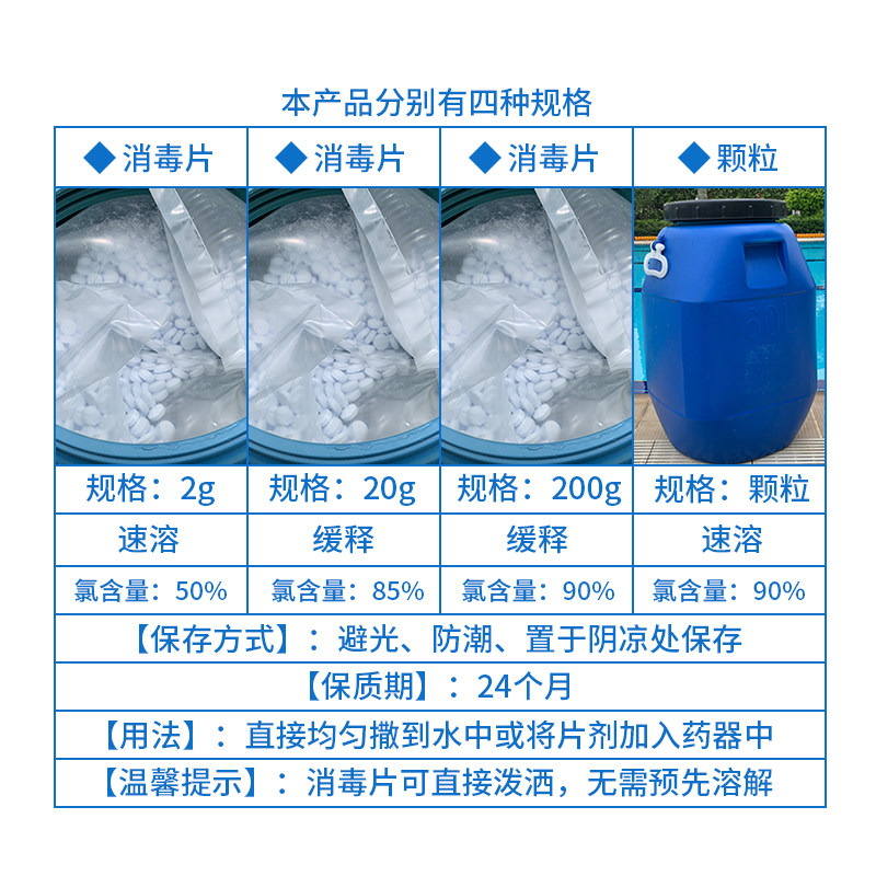 戴思乐消毒片泡腾片速溶片三氯异氰尿酸消毒剂游泳池用水清洁药剂