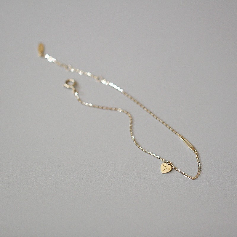 925纯银镀14k金手链女 气质百搭简约英文爱心别针极细手饰品