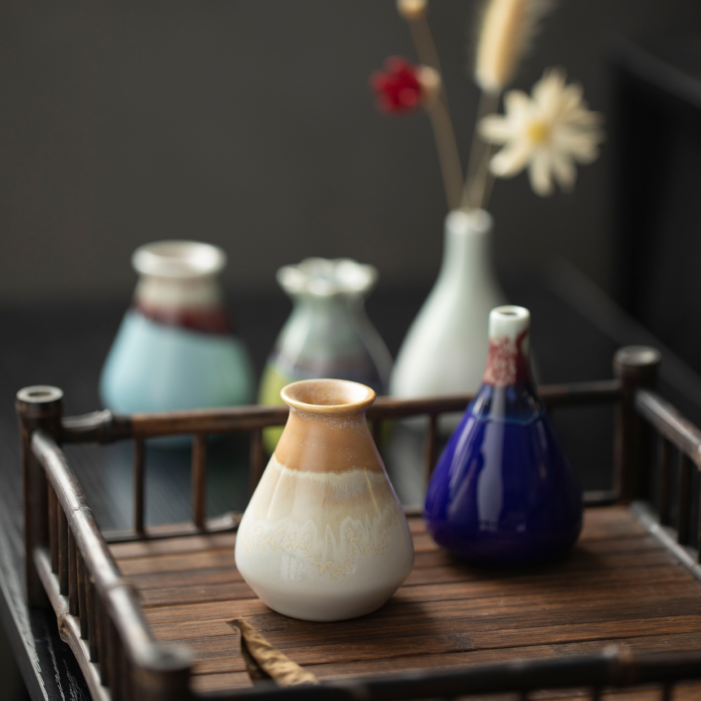 景德镇现代简约陶瓷小花瓶创意ins手工迷你装饰品摆件桌面插花器