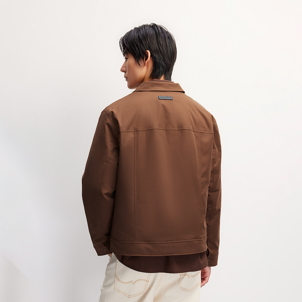 杰克琼斯男装秋冬羽绒服日常百搭通勤肌理感翻领口袋纯色长袖上衣