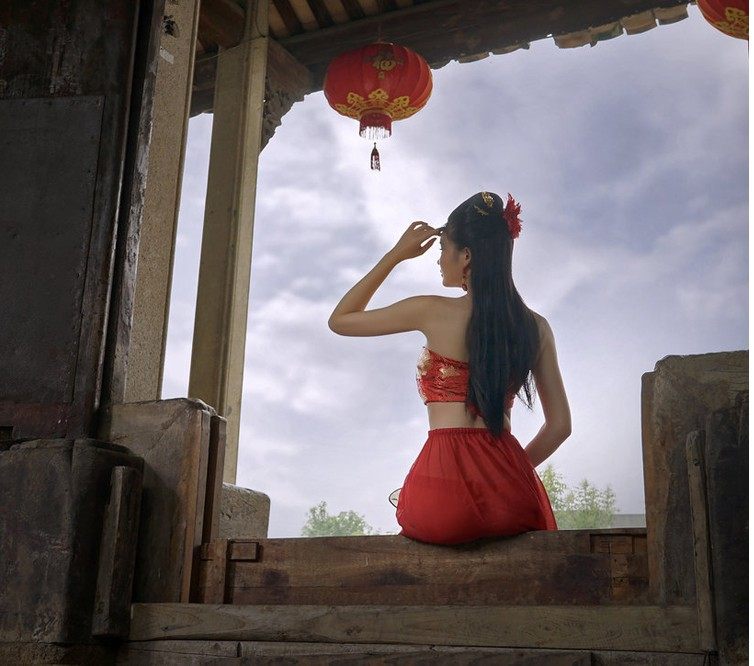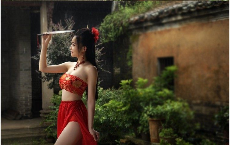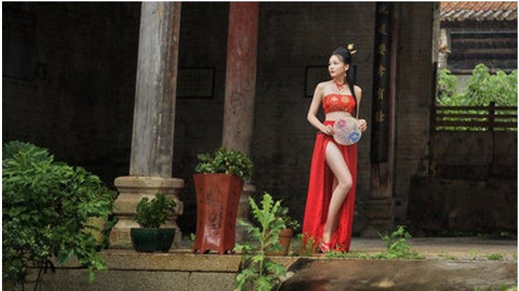 新款古装服装汉服仙女服嫦娥演出服性感红色盘子抹胸古典摄影写真