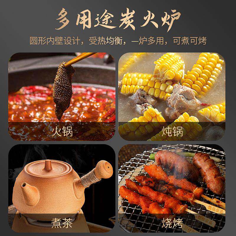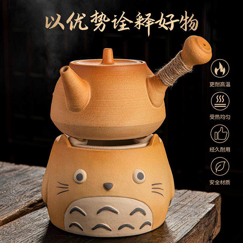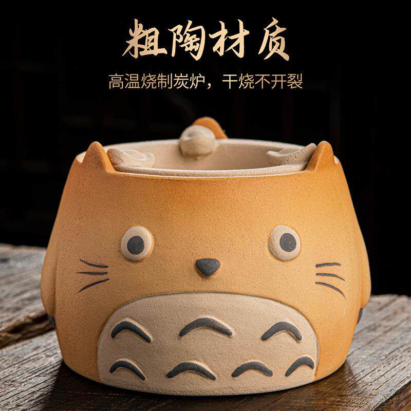 围炉煮茶创意粗陶龙猫炭火炉元宝侧把壶可家用室内配件
