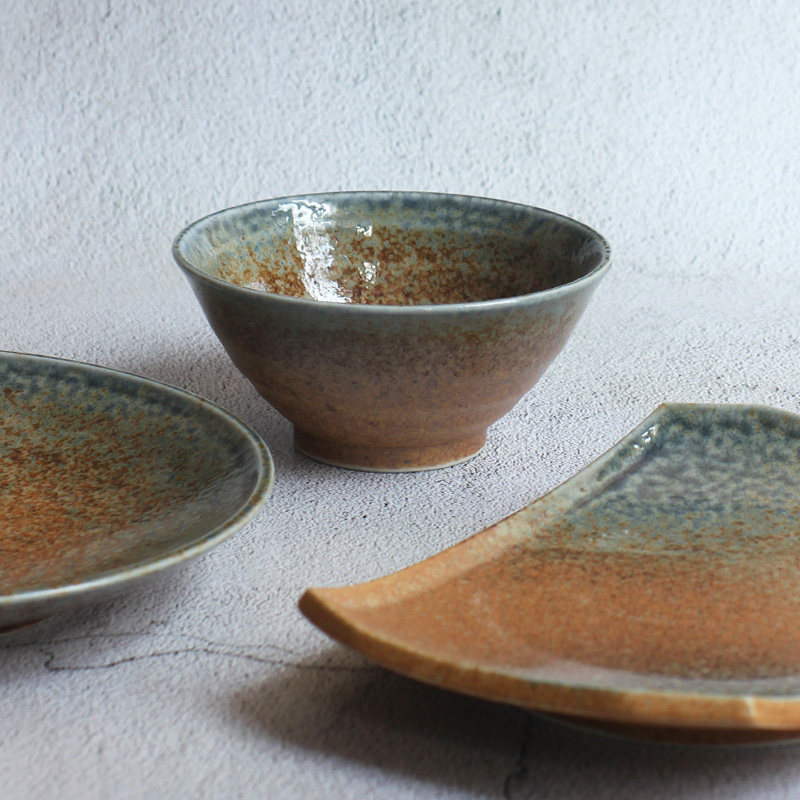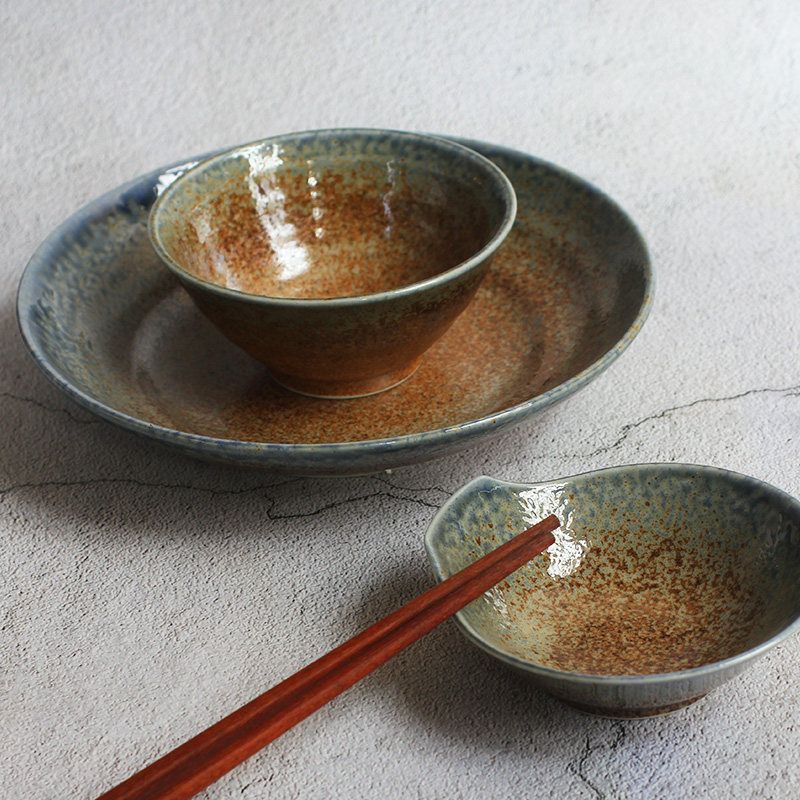 日本进口美浓烧砂地蓝饭碗日式家用陶瓷拉面碗汤碗餐具粗陶窑变釉