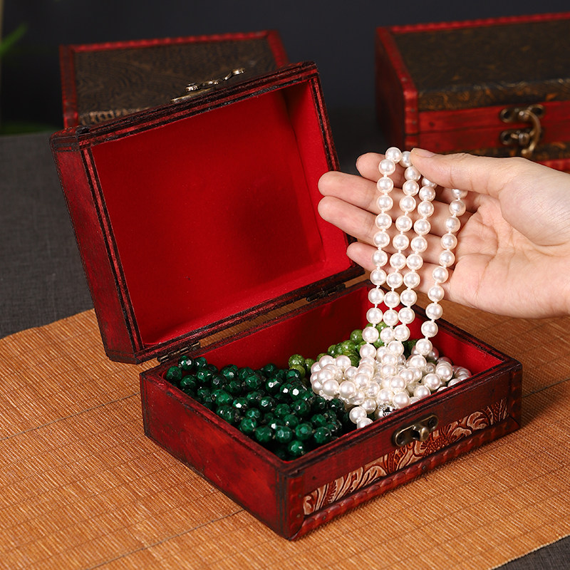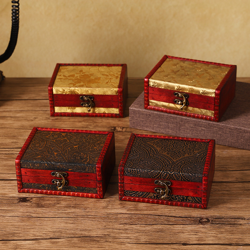 古典做旧木质收纳盒复古花纹