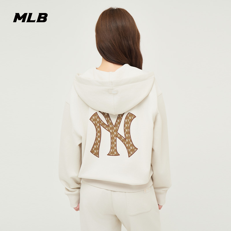 MLB官方男女复古老花时尚大logo连帽外套拉链夹克春夏TRM05