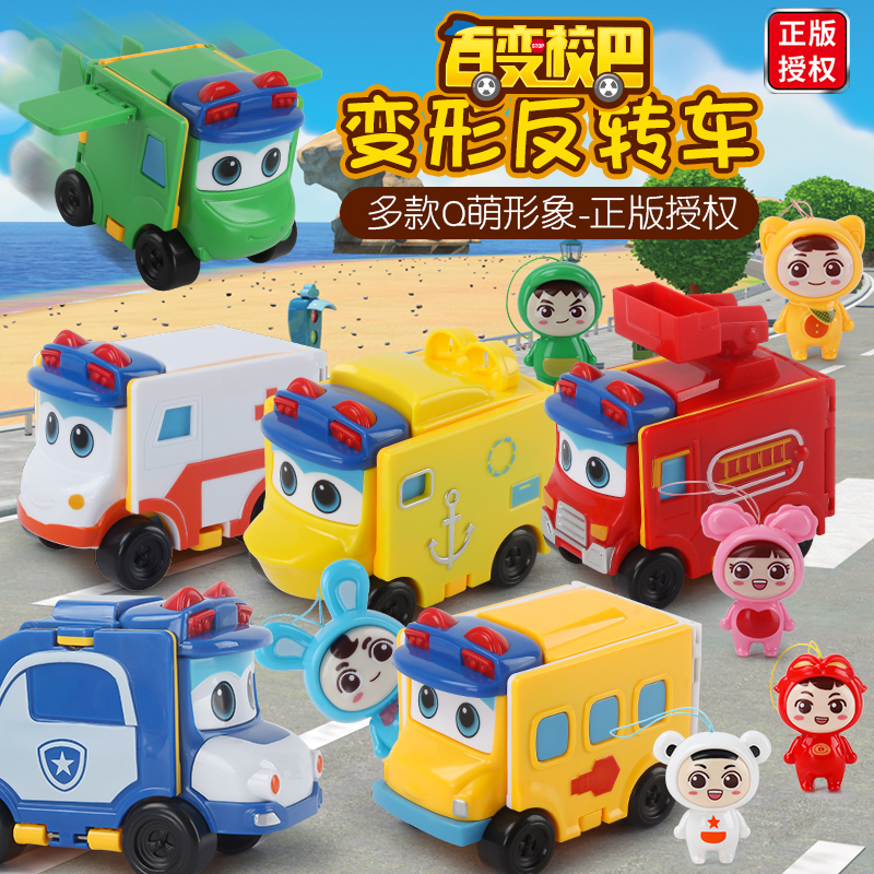 百变校巴歌德反转玩具车儿童益智变形消防警车红绿灯回力校车礼物
