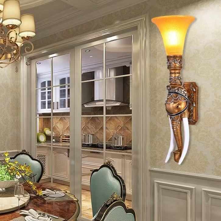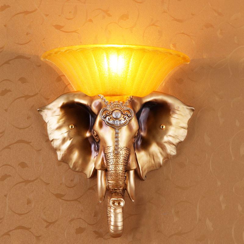 轻新款欧式大象墙2021创意床头灯高端奢背景造型复古卧室壁灯客厅