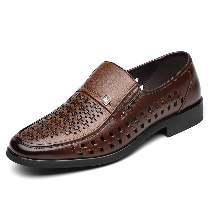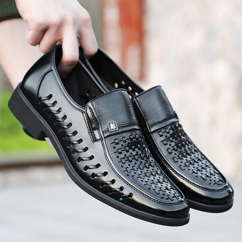 真皮凉鞋男商务正装皮鞋透气镂空洞洞鞋夏季软底编制牛皮休闲鞋男