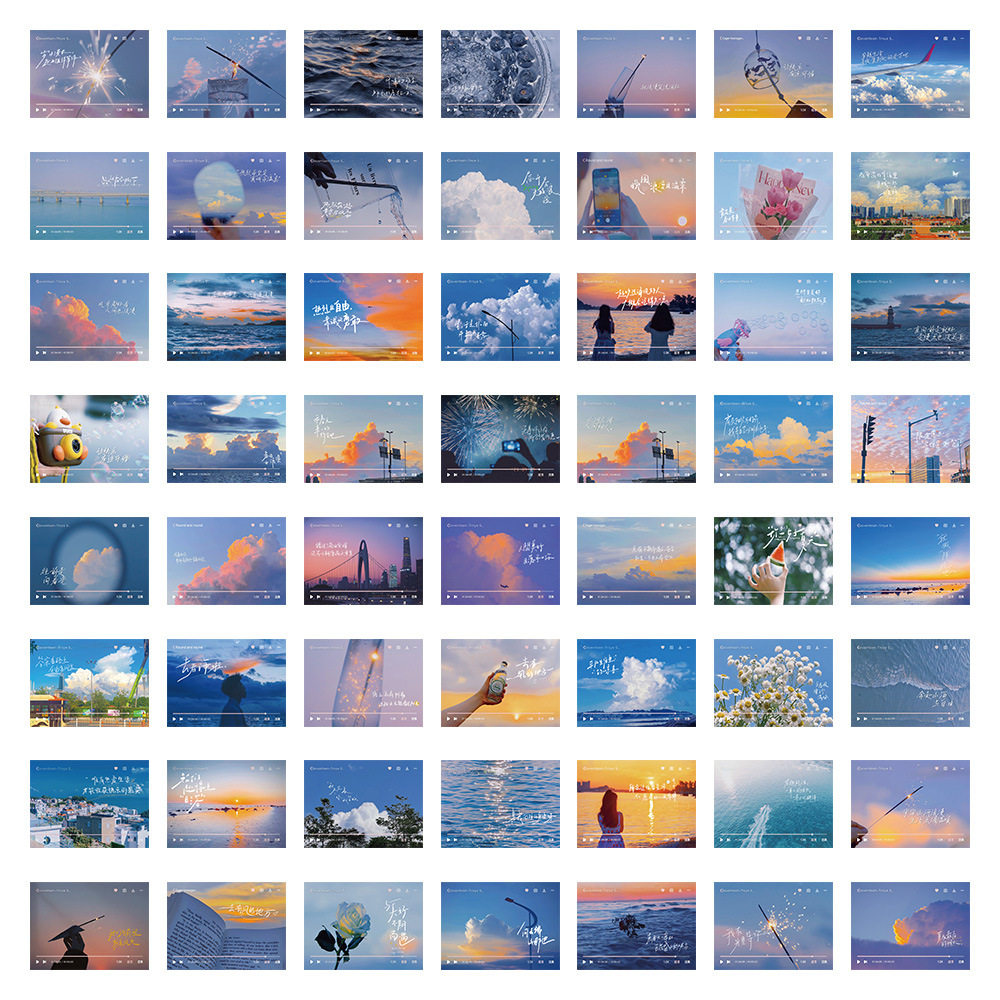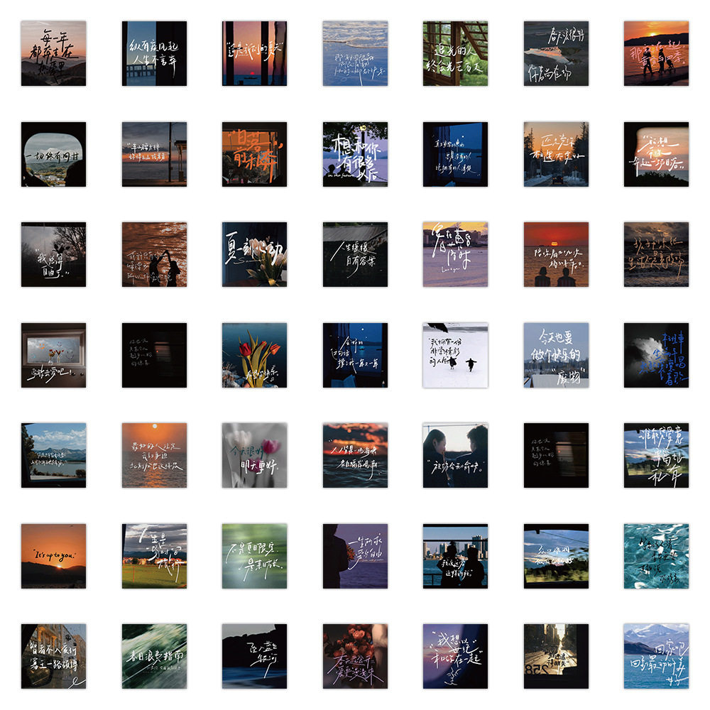 60张风景配文贴纸 励志文字浪漫治愈文案温柔风diy手机壳装饰贴画