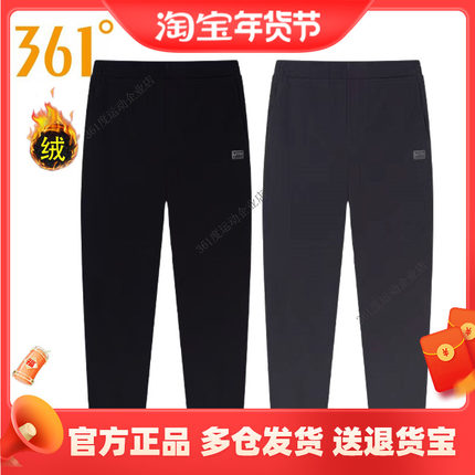 361度正品运动裤男2024冬季绒里直口保暖常规户外防风休闲长裤子