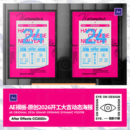 AE模板2026新年品牌企业开工大吉日历翻页动画动态海报宣传视频