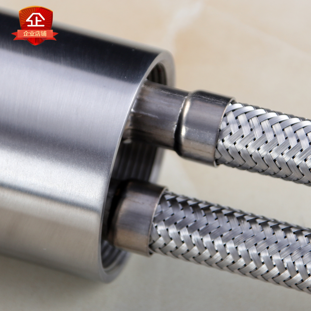 厨房洗菜盆面盆冷热龙头进水软管加长尖嘴304不锈钢编织长头防爆