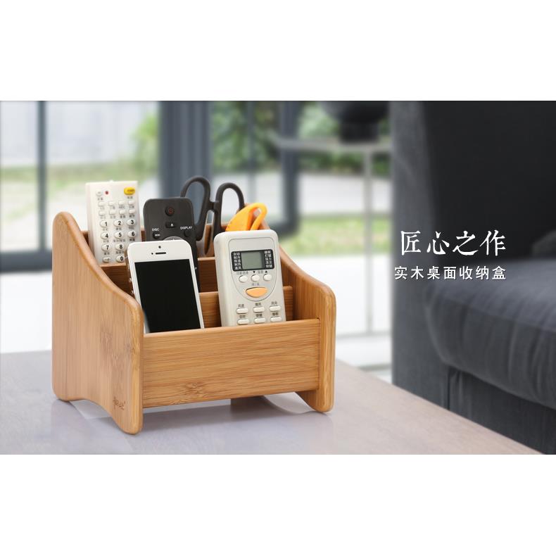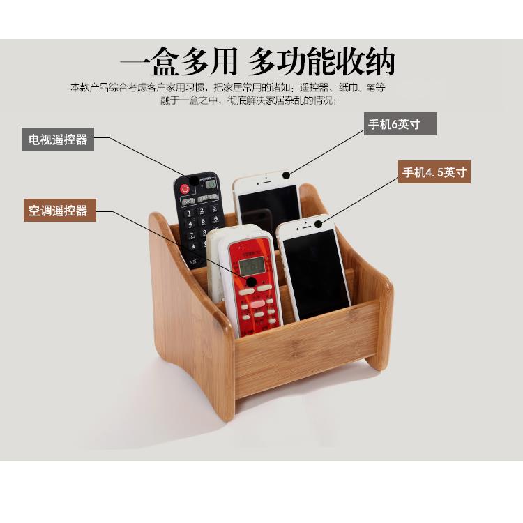 包邮楠竹遥控器收纳盒创意木质办公桌面整理储物箱客厅茶几收纳架