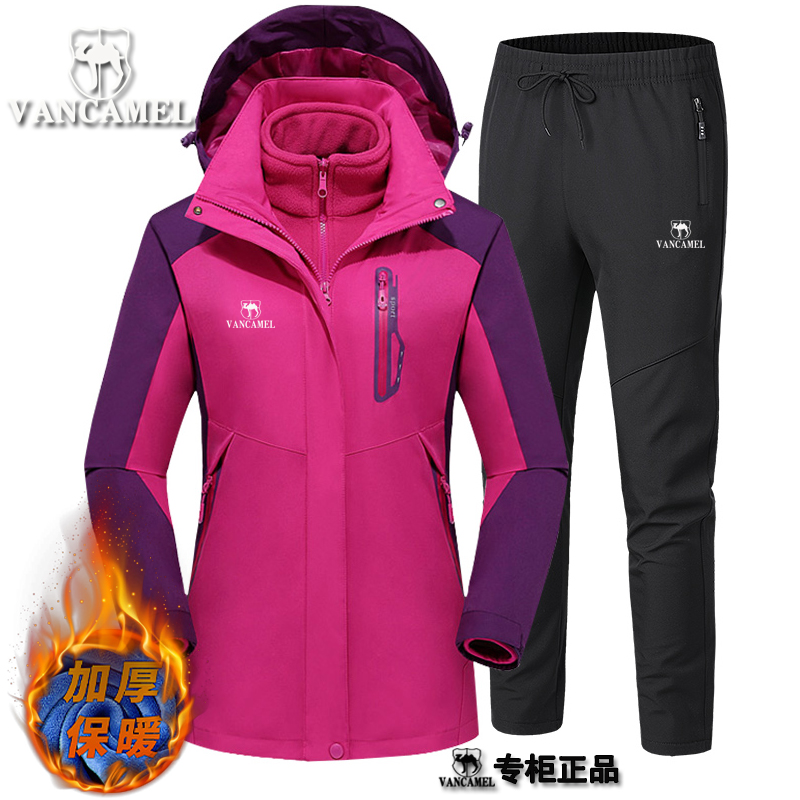 西域骆驼冲锋套装男外套三合一男女可拆卸防风防水秋冬加厚两件套