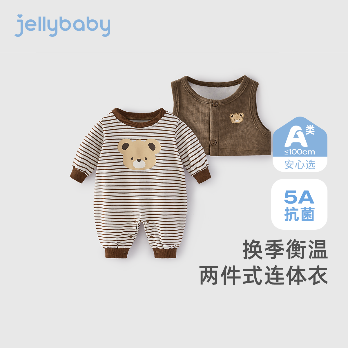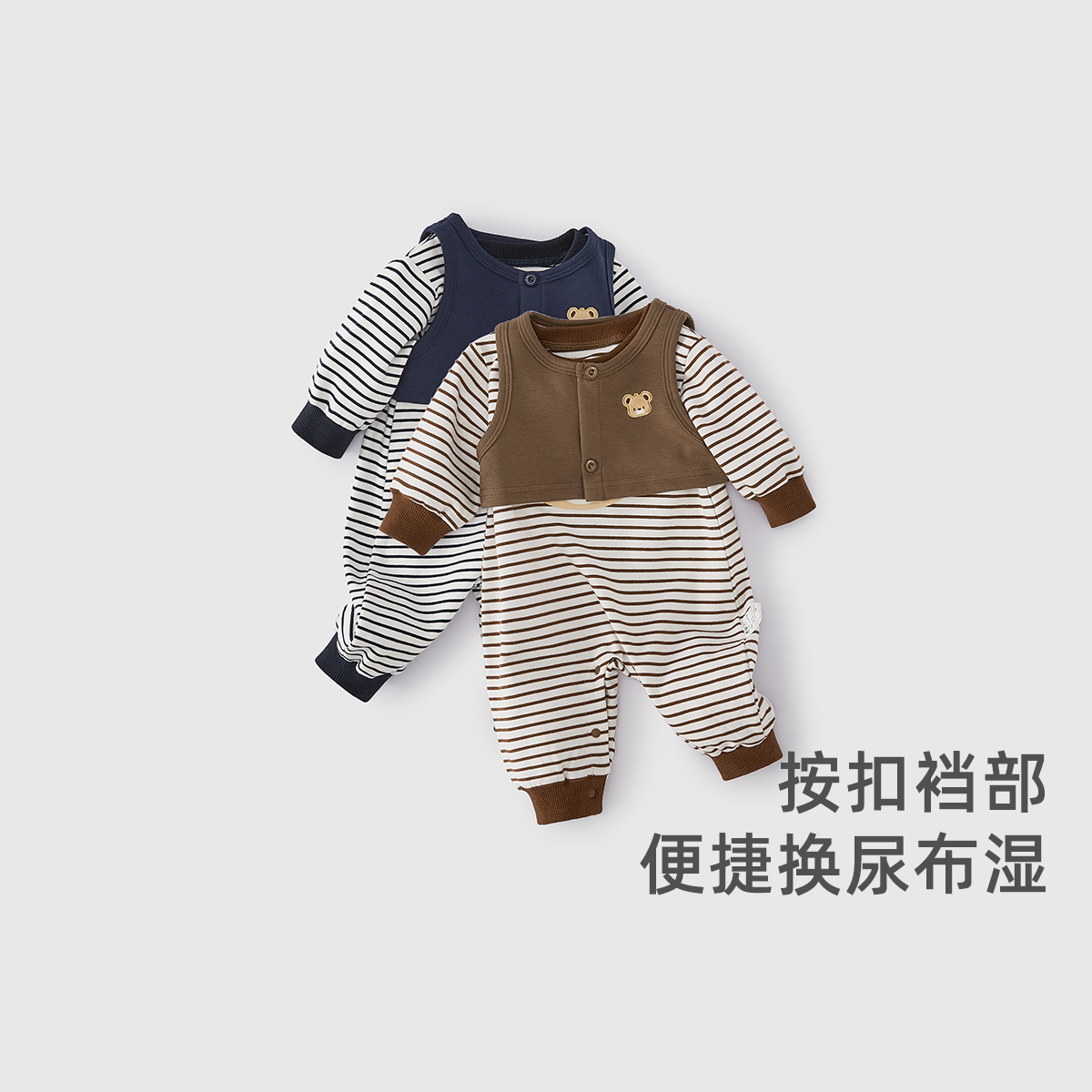[抗菌]连体衣婴儿春秋款男幼童条纹两件套新生儿衣服宝宝长袖哈衣
