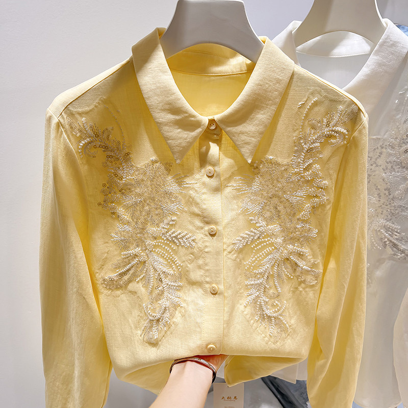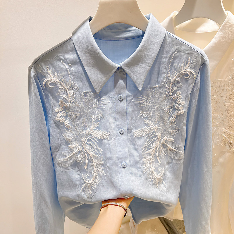 翻领钉珠单排扣衬衫