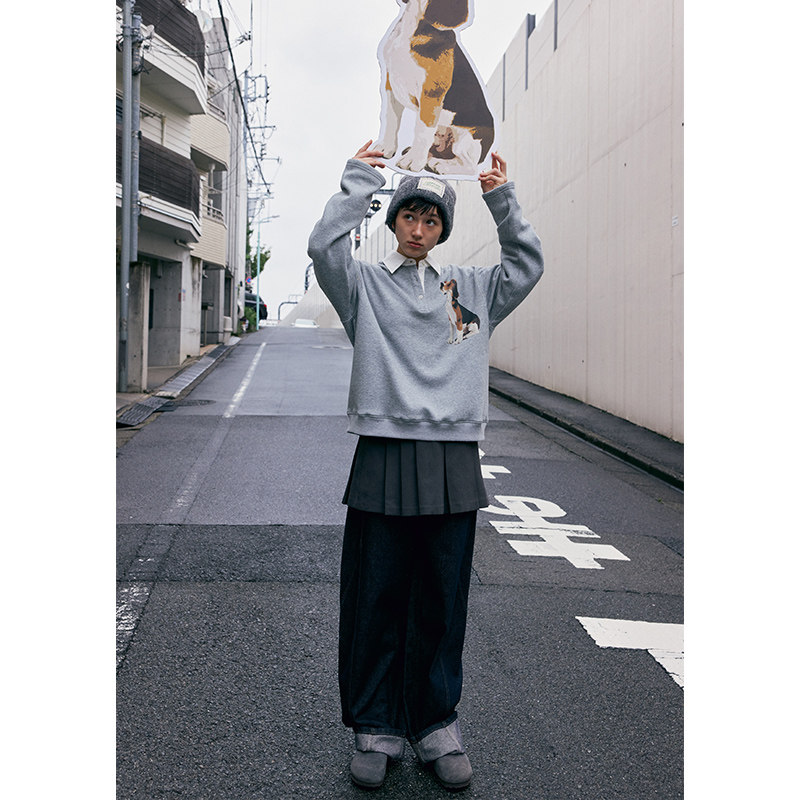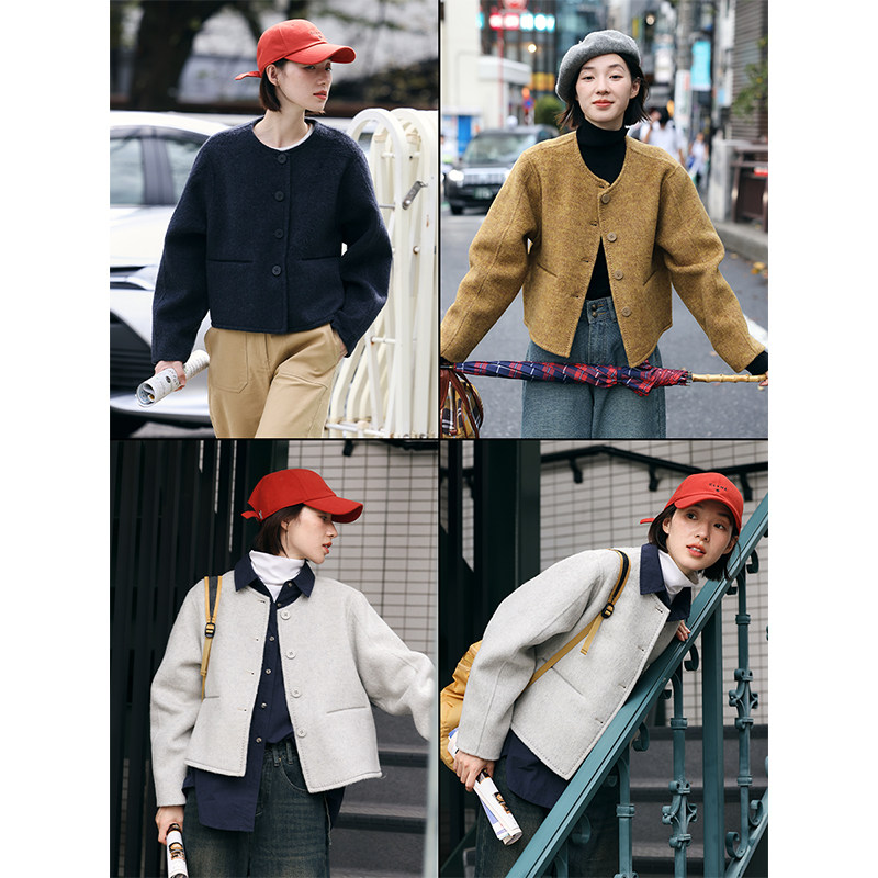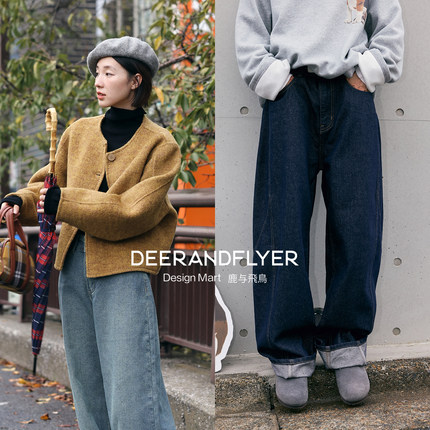 鹿与飞鸟秋冬三色短款大衣毛呢外套/原牛色弯刀牛仔裤