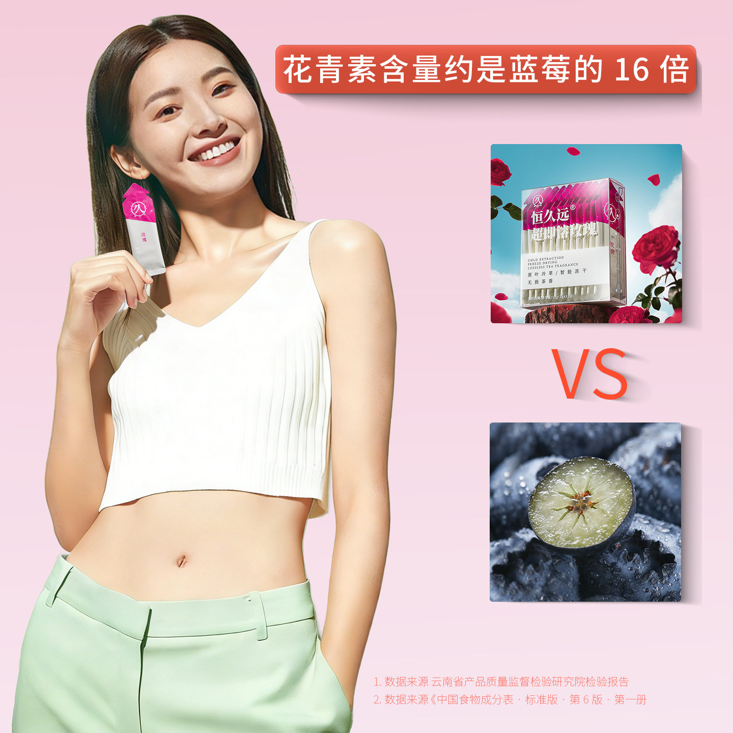 恒久远即溶冻干玫瑰花粉墨红重瓣玫瑰食用速溶冷萃浓缩冷泡茶