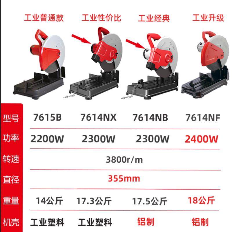 KEN锐奇切割机7614NB/7615B工业钢材型材铝合金切割机355mm大功率