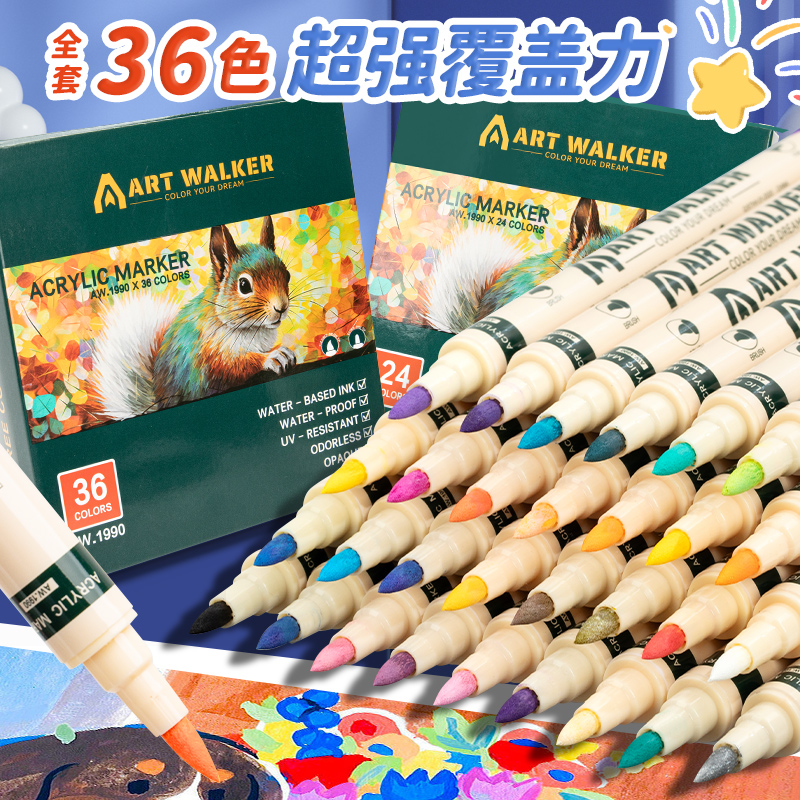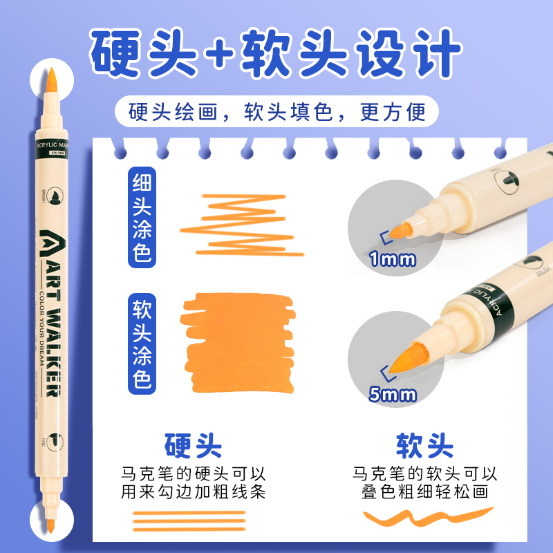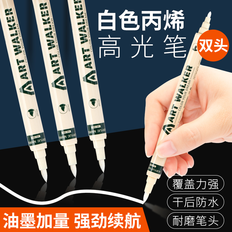 学生美术高光白笔丙烯马克笔绘画专用软硬双头白色记号笔水性diy高光笔黑卡相册手绘涂鸦漆笔金色笔签字补色