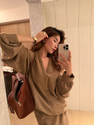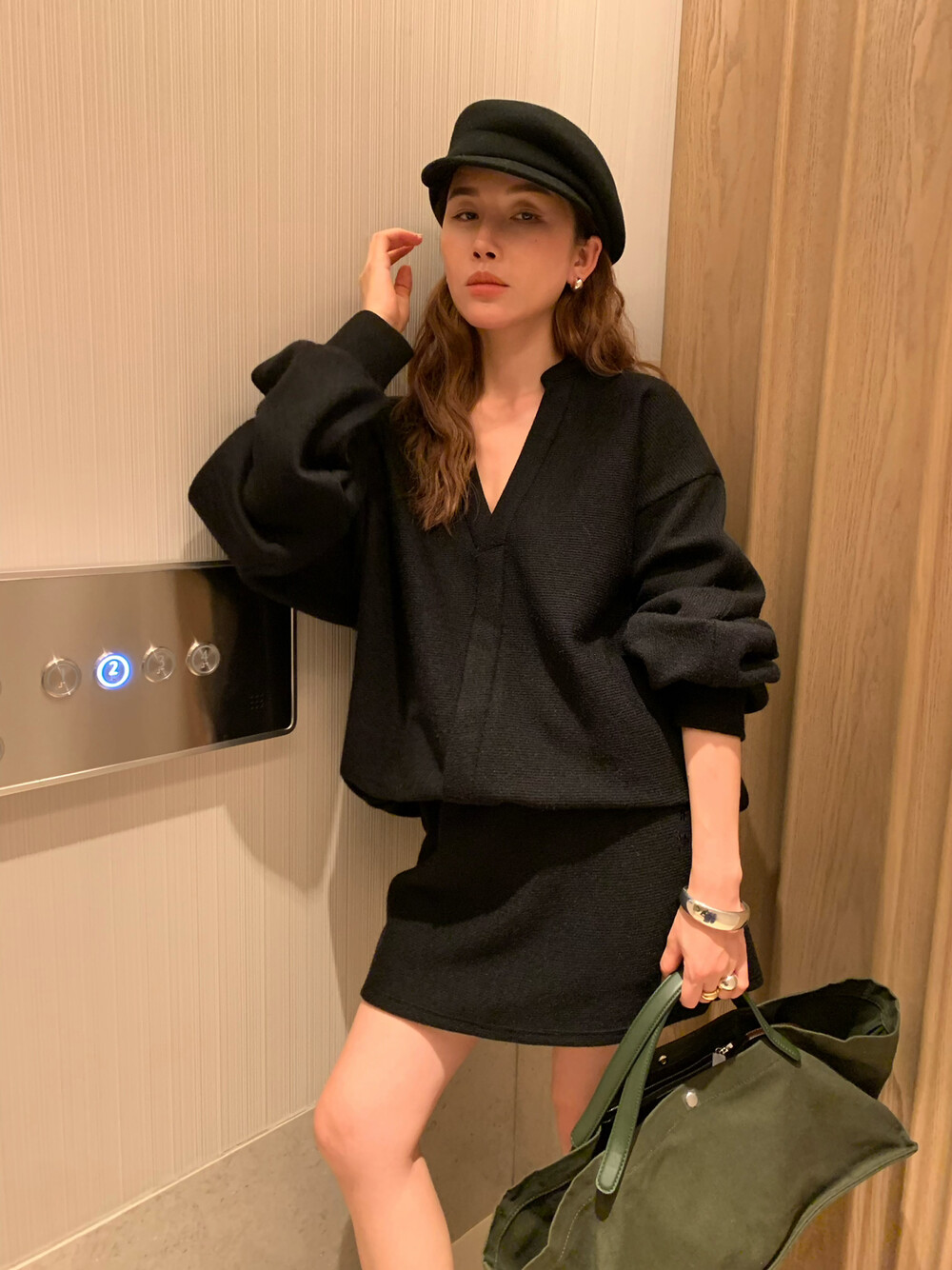 十三行2025秋冬新款ALL IN韩系V领长袖毛衣+半身短裙两件套套装女