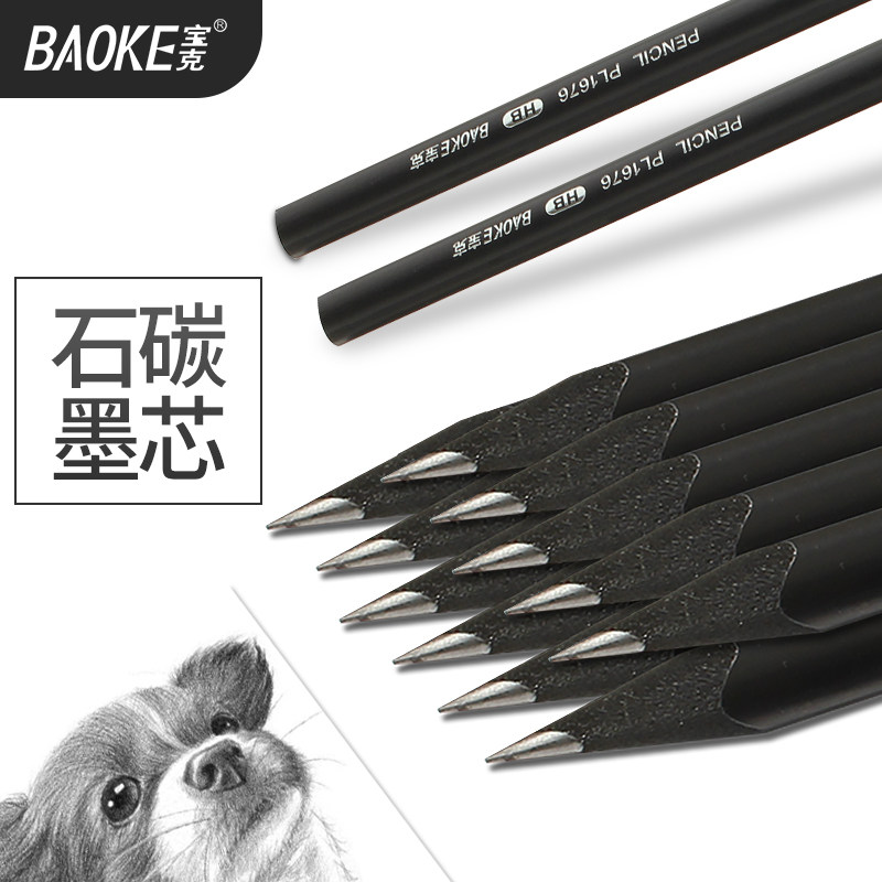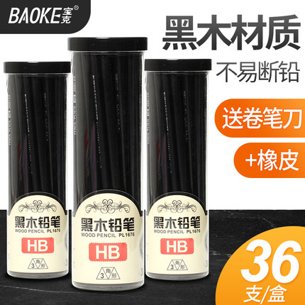 宝克黑木铅笔36支装HB黑色学生用不易断铅 送卷笔刀橡皮