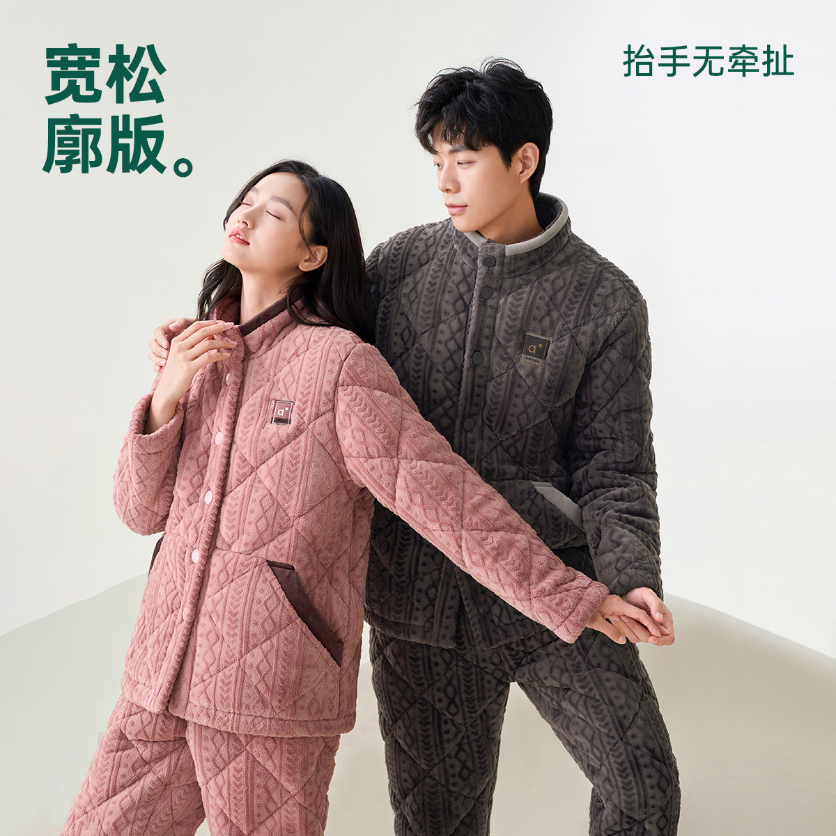 安之伴三层夹棉珊瑚绒情侣睡衣