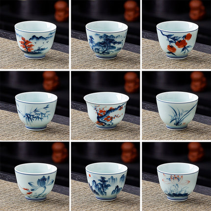 青花手绘茶杯陶瓷小号品茗杯功夫茶具手工中式单杯家用主人杯