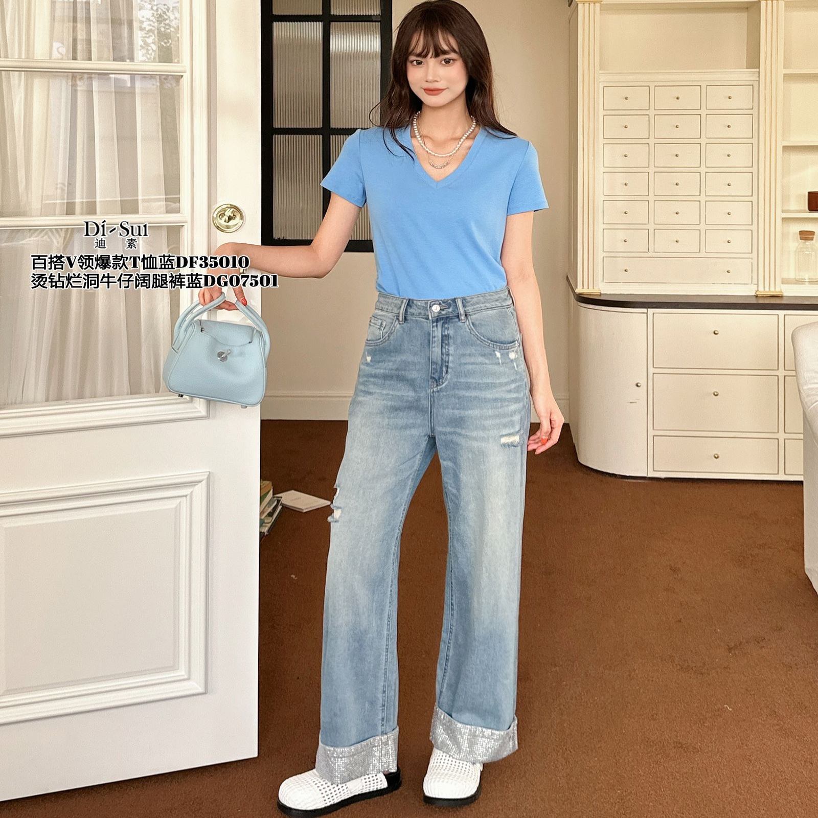 现货特价DI-SUI女装2025夏季新款07501韩版宽松阔腿牛仔裤女显瘦