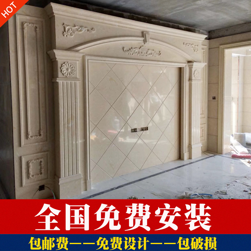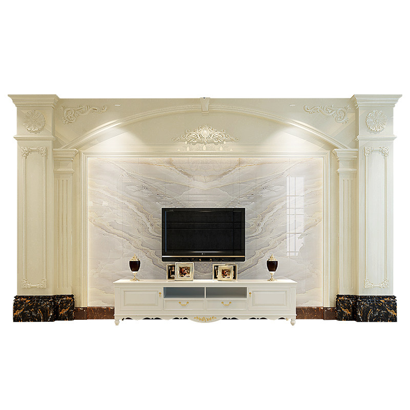 罗马柱电视背景墙瓷砖欧式客厅天然大理石边框复式石材装饰影视墙