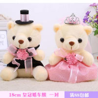 婚车毛绒熊18cm皇冠婚车熊 镶钻婚纱情侣熊 婚庆用品婚车装饰对熊