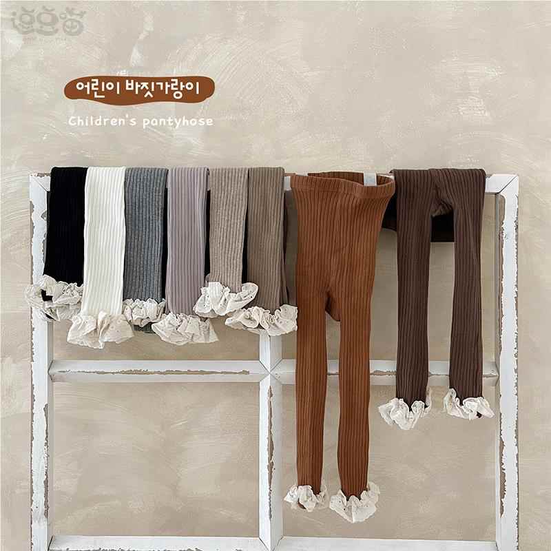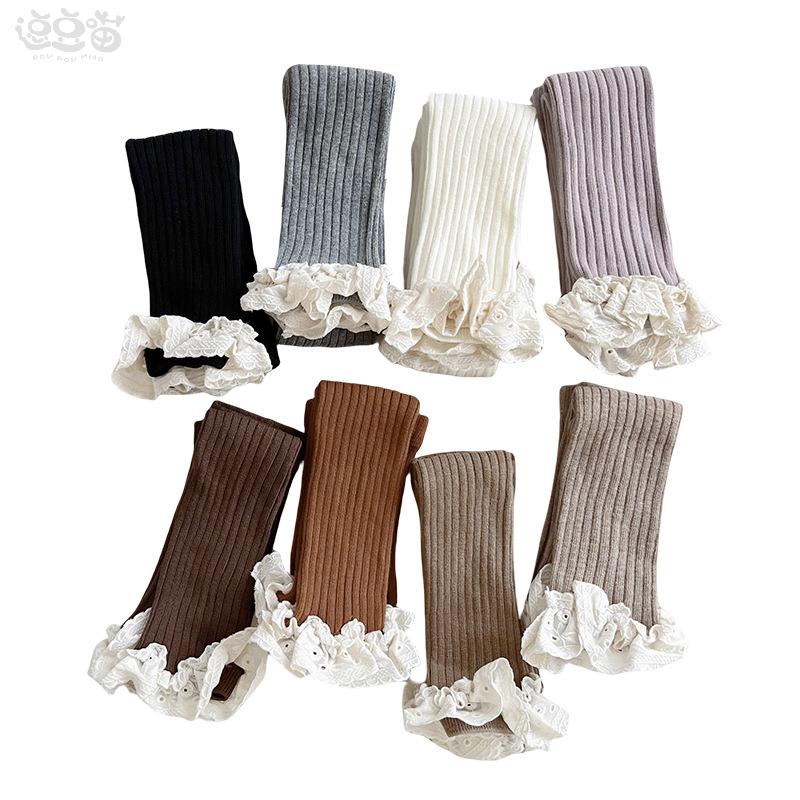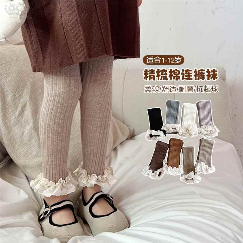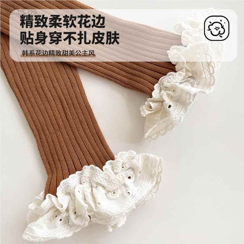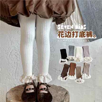 女童打底裤春秋季薄款儿童裤子纯棉白色洛丽塔九分裤花边宝宝长裤
