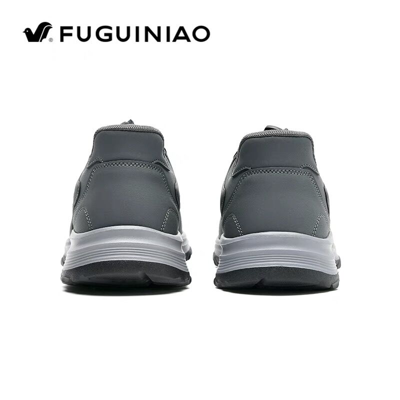 富贵鸟男鞋春季跑步休闲中老年登山旅游鞋皮面黑色厚底健步运动鞋