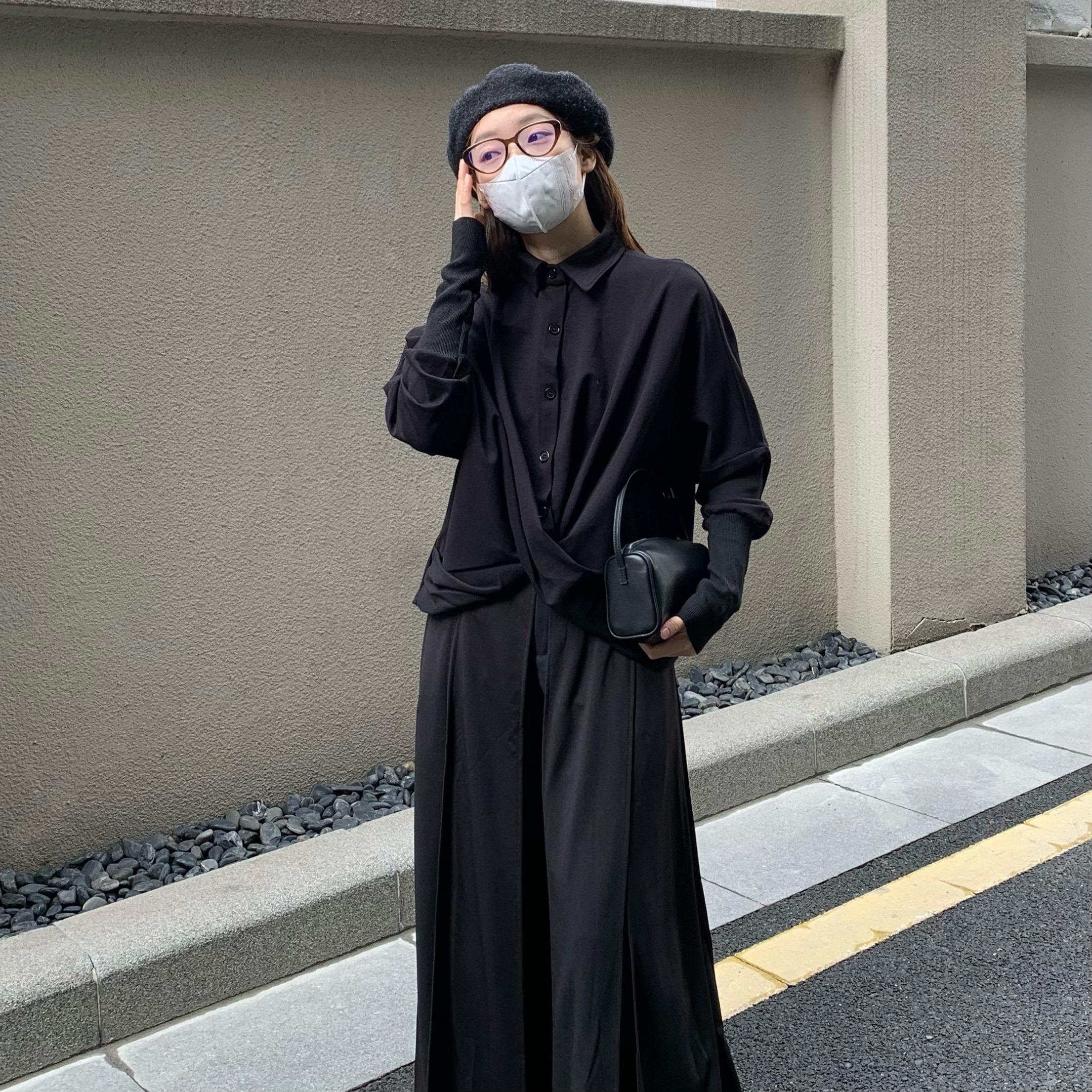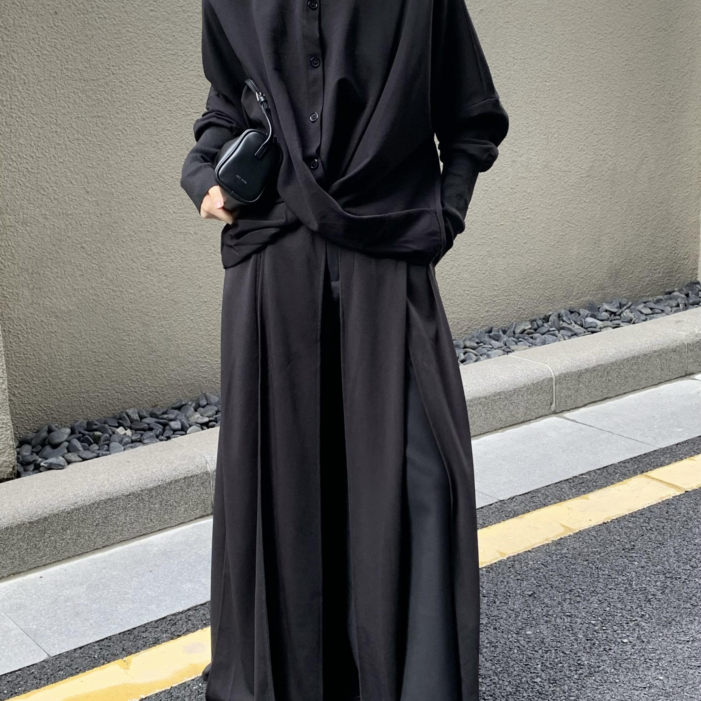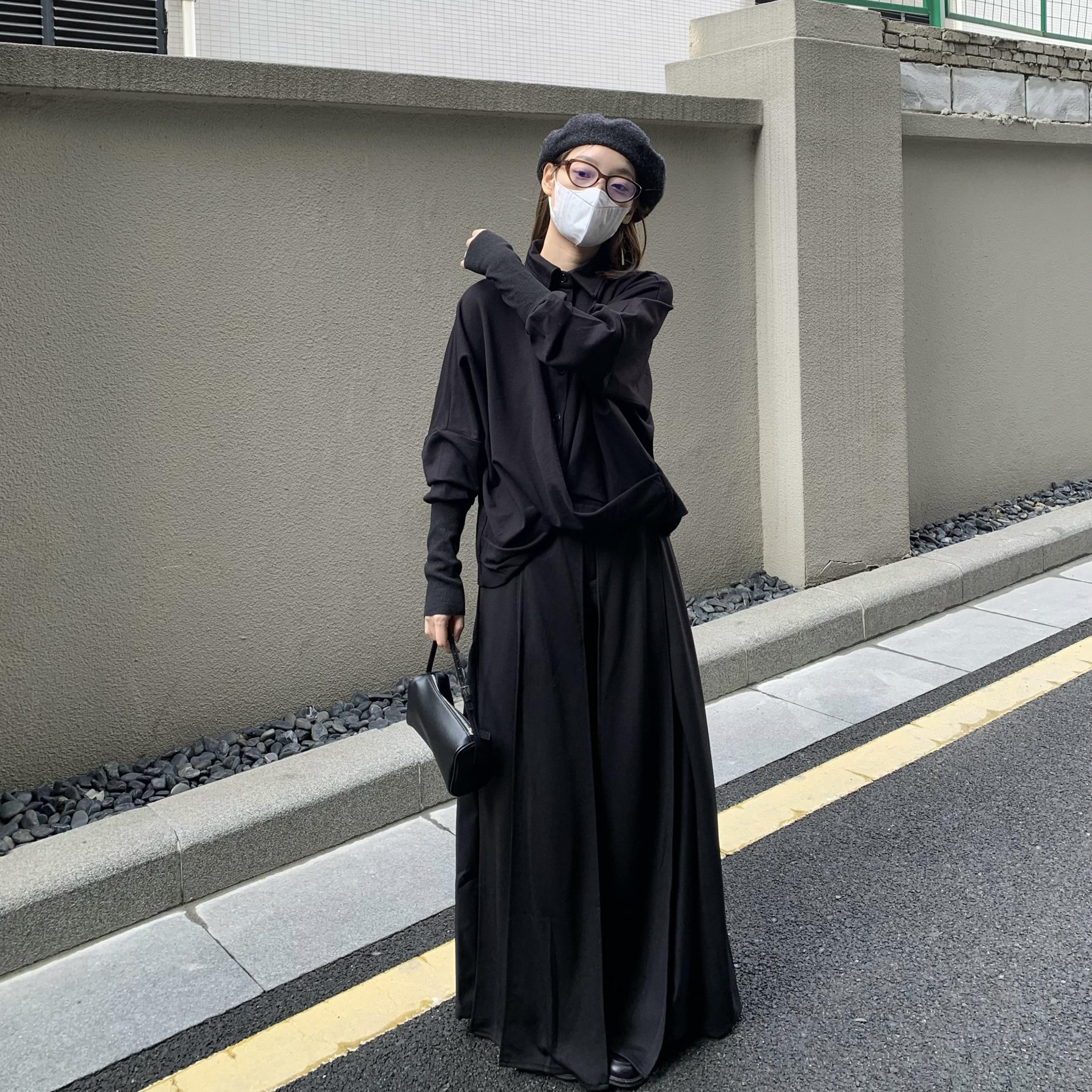 山本风长款显瘦半身裤阔腿裤不规则蝙蝠袖衬衫多片拼接设计感裙裤