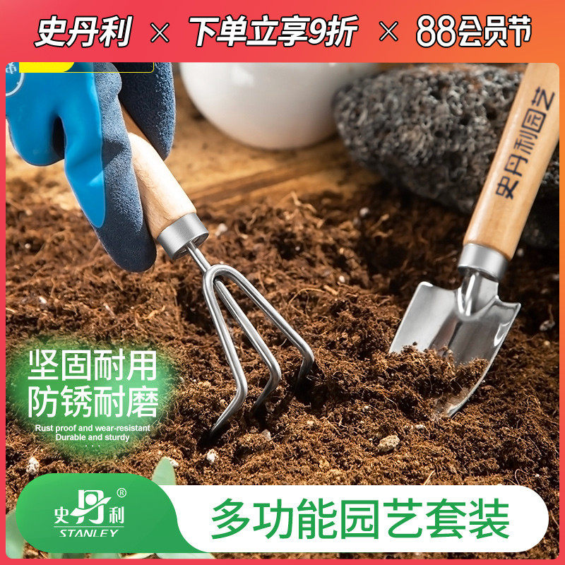 史丹利园艺工g具套装养花种花不锈钢铲子平铲小号挖土耙子松土花
