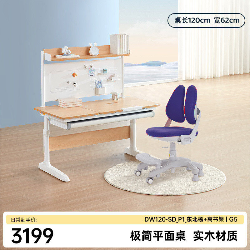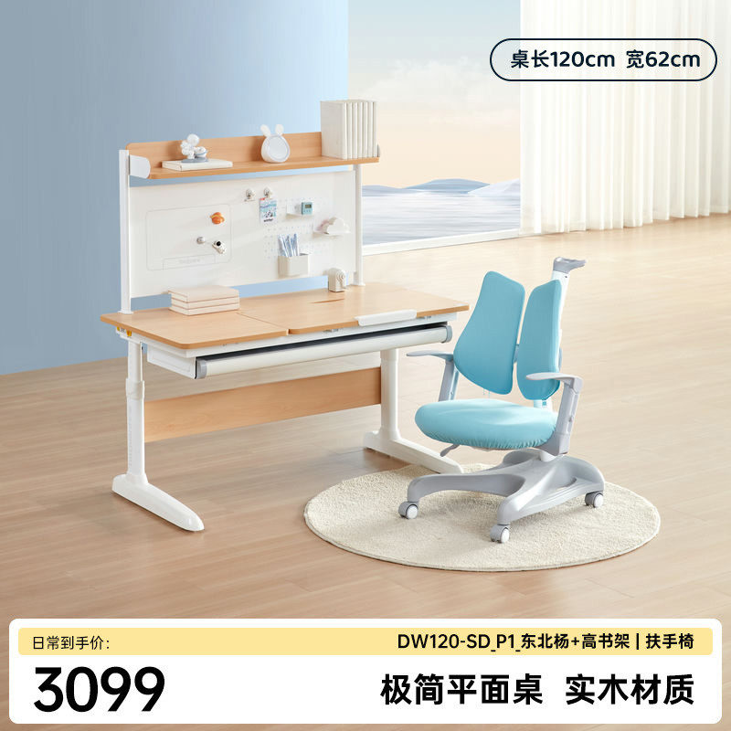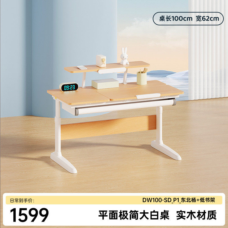 w*护童儿童学习桌实木大白平面桌现代简约小学生家用可升降书桌新