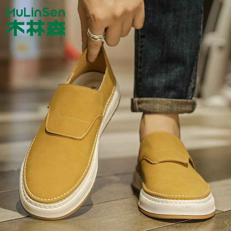 木林森男鞋2025新款春秋季透气软底豆豆鞋子男士百搭休闲一脚蹬鞋