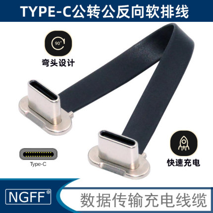 NGFF 五芯TYPE-C公转公反向PD快充FPC充电USB2.0数据连接软排线OTG供电65W 适用于硬盘 PD充电数据