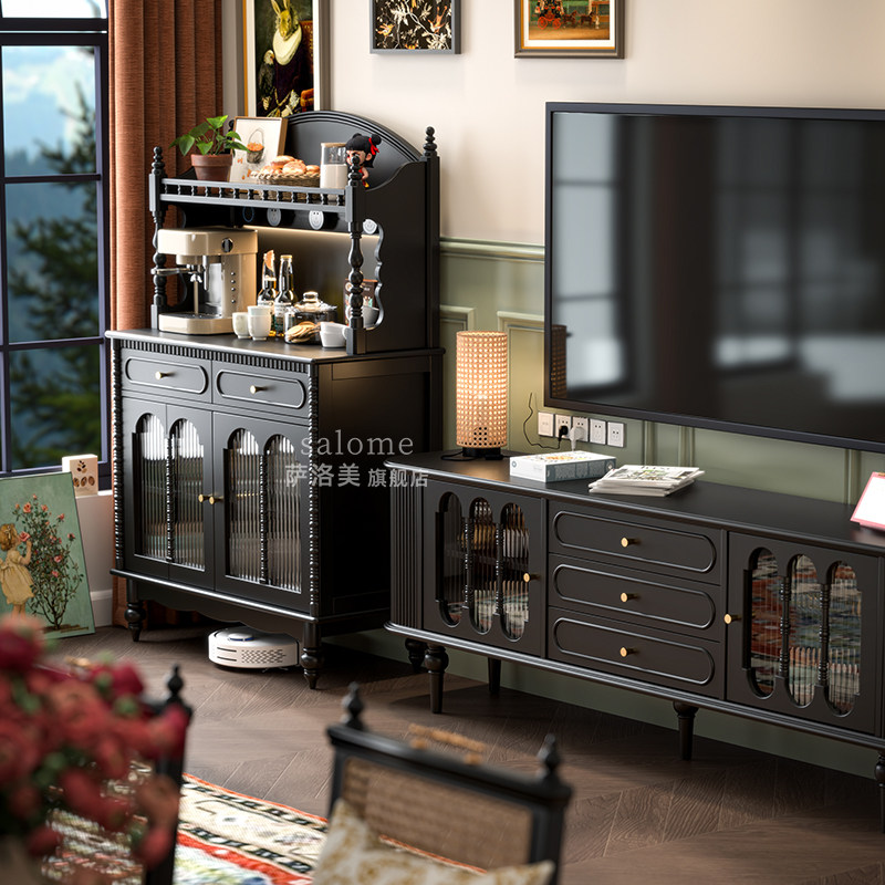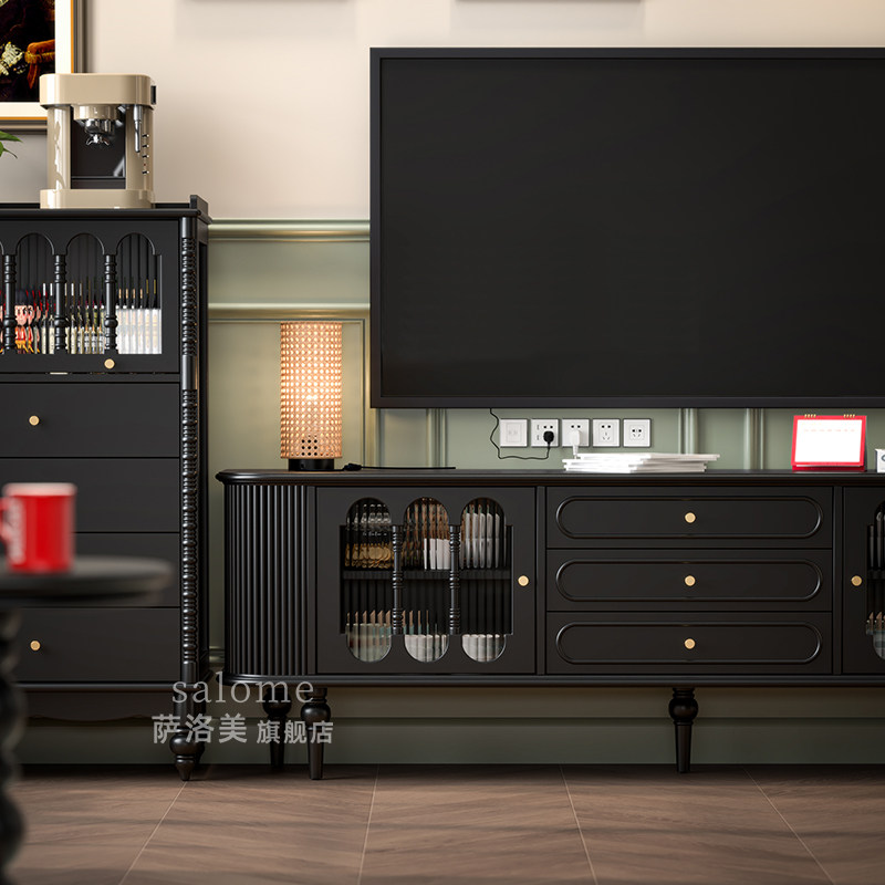 萨洛美式法式实木电视柜落地客厅中古风复古收纳储物柜一体小户型