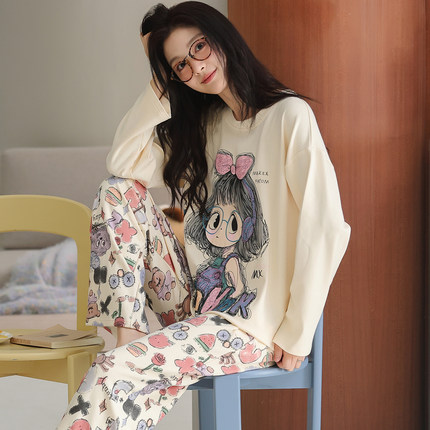 卡之恋女士纯棉睡衣春秋长袖长裤