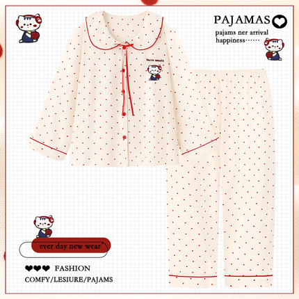 可爱卡通纯棉睡衣女春秋款2025新款长袖可外穿甜美家居服套装冬