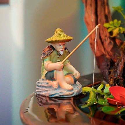 姜太公钓鱼老头鱼缸造景假山摆件客厅人物庭院树脂盆景鱼池装饰品