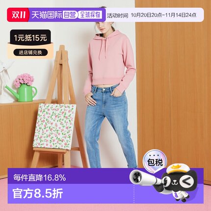 自营欧洲直邮Burberry博柏利女士棉质纯色字母落肩袖抽绳连帽卫衣