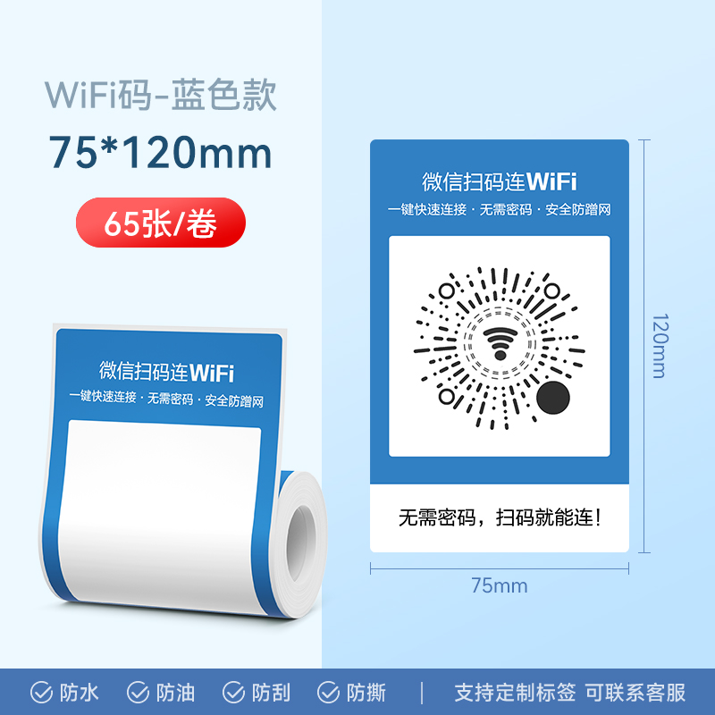 德佟扫码连WiFi二维码标签纸不干胶标签纸微信防水防油贴纸可定制标签机打印纸条码热敏标签合成纸