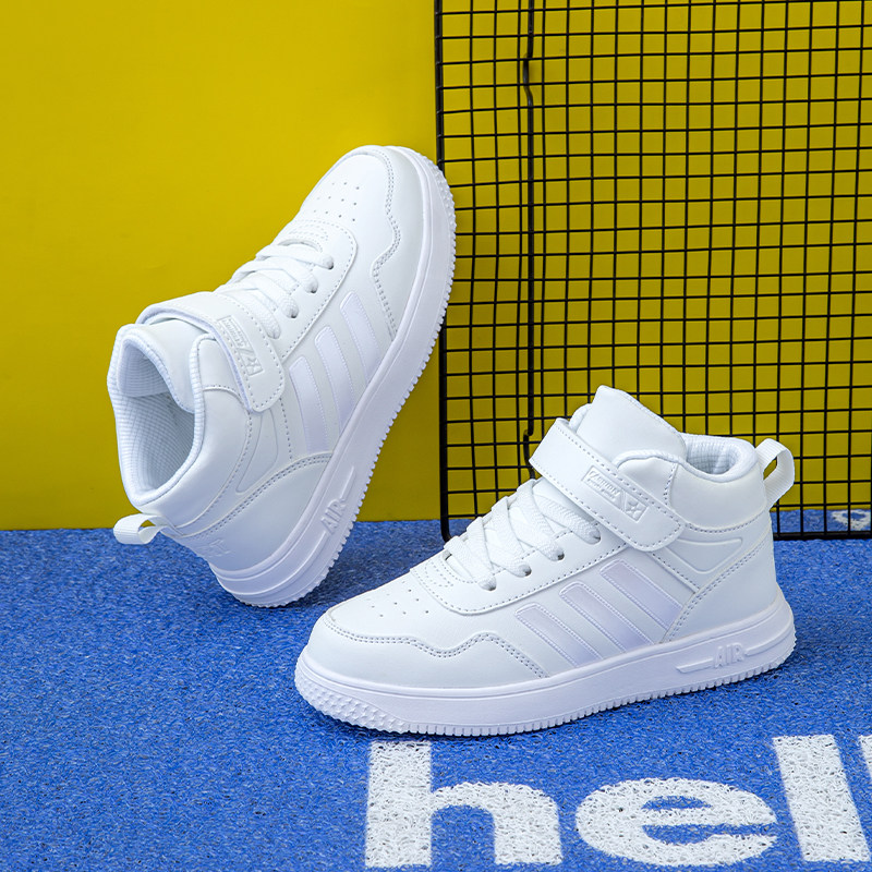 高帮儿童鞋滑板鞋男童白鞋女童小白鞋篮球鞋小学生白色运动鞋春秋